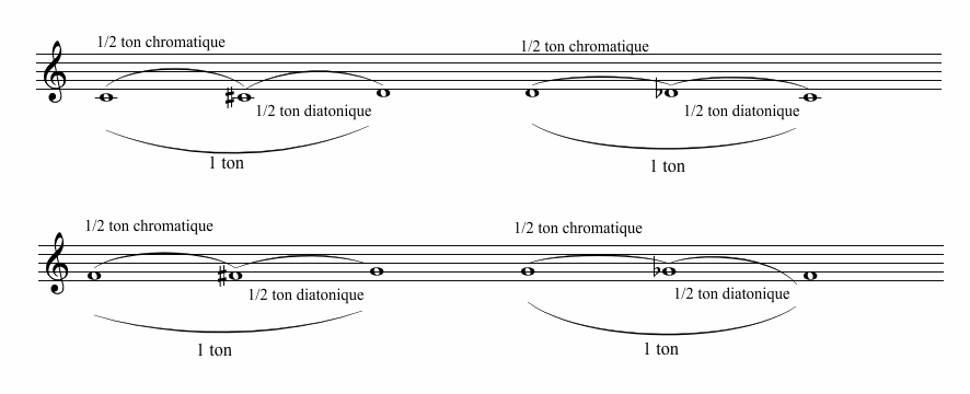 - Ces deux tétracordes sont exactement semblables dans la disposition des sons qui les composent.