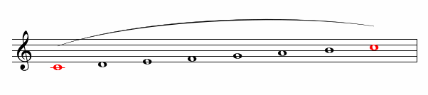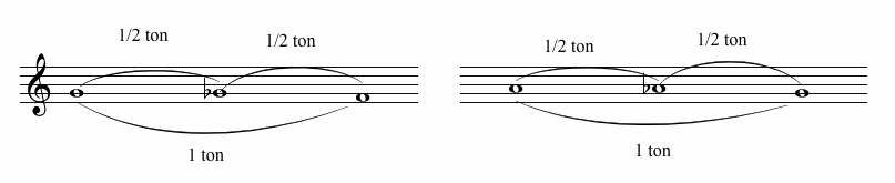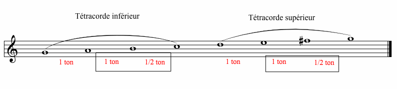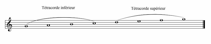 Ces deux tétracordes sont séparés par une seconde majeure (fa- sol)