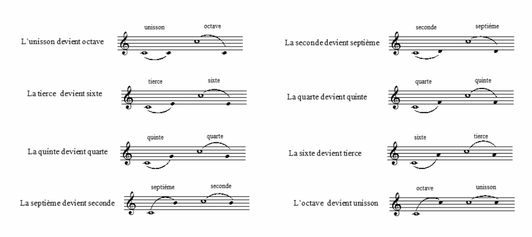 Dans le renversement, les intervalles se transforment de la manière suivante